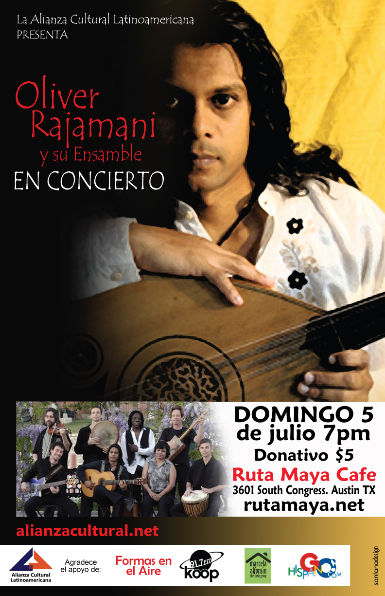 La alianza Cultural Latino Americana, tiene el placer de presentar para ustedes, a este músico fuera de serie. Oliver Rajamani y su ensamble.