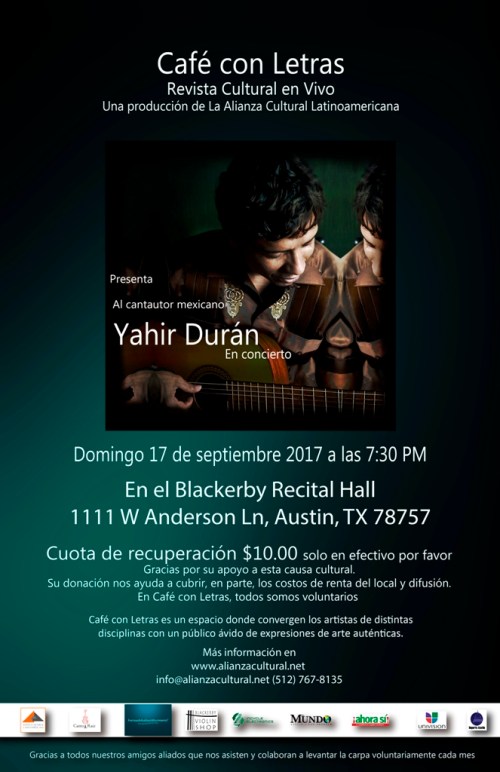 La Alianza Cultural Latinoamericana presenta este próximo domingo 17 de septiembre, desde México, al cantautor Yahir Durán.
