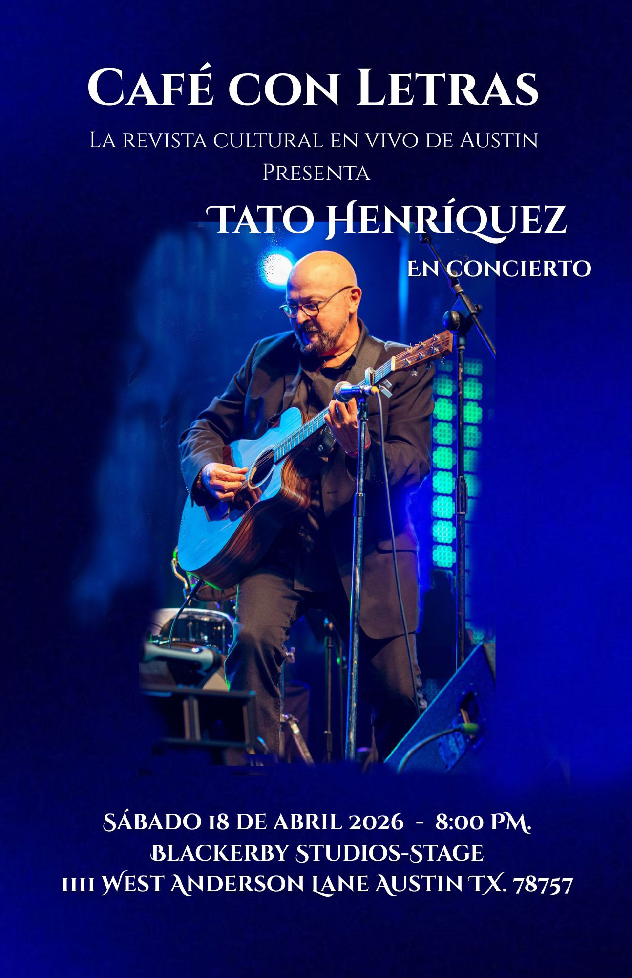 Querido público de Café con Letras, ha llegado la fecha de encontrarnos de nuevo. En esta ocasión tendremos en concierto al cantautor salvadoreño Tato Henríquez.